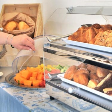 Il nostro ricco buffet, disponibile fino alle 11:30, offre una varietà di opzioni per soddisfare ogni gusto: fragranti croissant, diversi tipi di pane fresco, marmellate, cereali, frutta e verdura, affettati, yogurt e delizie salate. Inoltre, puoi prepararti una spremuta d'arancia dissetante e genuina, o una centrifuga deliziosa e rigenerante, con gli ingredienti freschi che mettiamo a disposizione.